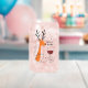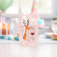 A funny and cheerful Christmas holiday design showcases a reindeer wrapped in festive lights, holding a glass of red wine, surrounded by colourful stars. The handwritten text says, "Tipsy and Bright." This delightful design is available on a variety of products, making it a perfect gift for wine lovers.
