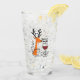A funny and cheerful Christmas holiday design showcases a reindeer wrapped in festive lights, holding a glass of red wine, surrounded by colourful stars. The handwritten text says, "Tipsy and Bright." This delightful design is available on a variety of products, making it a perfect gift for wine lovers.