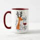 A funny and cheerful Christmas holiday design showcases a reindeer wrapped in festive lights, holding a glass of red wine, surrounded by colourful stars. The handwritten text says, "Tipsy and Bright." This delightful design is available on a variety of products, making it a perfect gift for wine lovers.