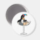 A cute and tipsy penguin sipping away at the cocktail glass he's sitting in.