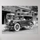 1920s tire puncture test. Lee Tire Comapny test with car up on on beds of nails, 1922. Nice view with store front advertising signs.
