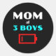 Tired Mum Of 3 Boys Mother With Three Sons Low Bat Classic Round Sticker