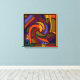 This gallery-wrapped canvas features a variation of Leslie Sigal Javorek's original composition "Fitting In - A Geometric Exercise in Philosophy". In this version, the components revolt, twisting themselves into what looks like chaos but is merely the baby steps needed to create enough momentum to roll down the road on a different path. A metaphor for asserting our independence? Or just a pretty picture?
