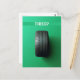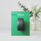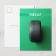 A green postcard with a car tire illustration and the customisable funny text "tired?". This is a fun postcard with a word-play humour that you can send to your friends before holidays to invite them for a vacation.