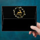 Tis the Season Christmas holiday design envelopes with snowflakes typography text of gold that reads Tis the Season to be Jolly Fa la la la la la la , also features a laurel wreath of gold, green, and white with a gold deer on the outside flap!