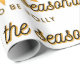 This wrapping paper showcases the words "Tis The Season To Be Jolly" in a unique and sharp print font plus black letters gold outline with a gold Christmas gift like wrapping ribbon and bow in this X-mas theme and style. All wrapping papers are offered in four types of premium paper and five different sizes. Has a softer surface and dull finish with full colour edge to edge printing on 60lb, text weight matte paper. Great for all types of gift wrapping for anything, from birthdays to graduation, weddings to anniversaries.