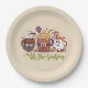 This spooky-cute Halloween paper plate features a trio of festive drinks: a dark witch’s brew in a cauldron-like cup, pumpkin spice in a cheerful orange and purple mug, and a playful ghost- or ghoul-shaped cup. The whimsical phrase “’Tis the Season” brings a fun twist to fall traditions, celebrating the cosy-meets-creepy spirit of autumn. Perfect for Halloween lovers, fall vibes, and seasonal magic!