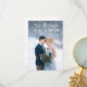 A wonderful wedding photo of the newlyweds, and lovely white brush holiday text. The features of this card can be personalised.