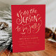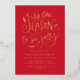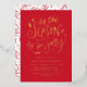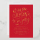 Elegant holiday party invitation featuring the phrase "'tis the season to be jolly" in gold foil lettering with foliage accents on a red background. Personalise the festive invite by adding your holiday party details. Designed to coordinate with our "'Tis The Season to be Jolly" holiday collection.