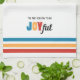 Joyful kitchen towel to brighten your kitchen throughout the holiday season. "Tis the Season to be Joyful. White towel with turquoise, red, and yellow stripes.