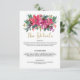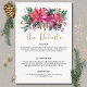 Make your Christmas winter wedding dreams come true with this modern and elegant poinsettia bouquet invitation suite. The watercolor pink and red poinsettia bouquet is accented with greenery, pine, twigs, pine cones, red holly berries, and gold accents. This invitation suite is perfect for an elegant and modern winter wedding. Gold Script "Tis The Season To Be Married" .