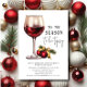 This invitation features a modern typographic design with the saying "'Tis the Season to Be Tipsy!" and a wine glass with a pine branch and tiny festive red ornaments. It's the perfect way to invite your guests to a night of fun and celebration.