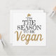 This white Christmas greeting card features a black and gold caption in modern fonts that reads 'Tis the season to be Vegan, and is decorated with a tiny golden star.