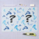 Question mark is the default character. Personalise with any keyboard character. Two large central characters in black is surrounded smaller characters that are jumbled around the background, showing in various shades of blue.