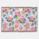 Watercolor pattern with various flowers and blue tit bird painted with watercolors.