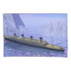 Titanic ship next to big icebergs sinking in cold northern ocean water