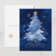 Send elegant holiday greetings with this stunning navy blue Christmas card featuring a watercolor Christmas tree wrapped in golden ribbon and topped with a gold star. Surrounded by delicate gold snowflakes on a deep blue background, this design exudes refined winter elegance. Perfect for sending warm holiday wishes from an individual, couple, or family who loves timeless and classy Christmas designs.