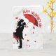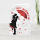 Celebrate your love with this elegant and romantic greeting card, featuring a beautiful silhouette of a couple sharing a sweet moment under a red heart-shaped umbrella. The classic red and black design against a clean background makes it a timeless choice for expressing your feelings this Valentine's Day.