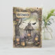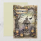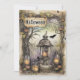 This haunting illustration invites viewers into a forgotten woodland shrine, where twisted branches and creeping vines cradle four enchanted lanterns—each flickering with ghostly candlelight. At the centre, a skull-topped beacon casts an amber glow over moss-covered stone, fallen leaves, and strange fruit. Above, a weathered parchment inscribed in arcane script seems to whisper secrets from another realm. A lone bat glides through the misty gloom, adding motion to the eerie stillness. Both rustic and magical, the scene conjures themes of mystery, ritual, and ancestral folklore—perfect for Halloween designs that revel in shadow and symbolism.
