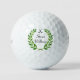 Titleist Pro V1 golf balls shown with a green winner's wreath print, shown with a sample custom name, customise and change the text to yours.