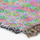 A vibrant kaleidoscope of colours forms an intricate symmetrical pattern, dominated by hues of pink, blue, green, and yellow. The design creates a mesmerising effect, reminiscent of mandalas or stained glass.