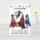 Design is brilliant - there is a male version and a female version of this cartoon and I bought both! You can personalize all the type on this card. I love these cartoon cards from Le Grand Art. I will be coming back to buy more. So pleased with the quality. Great colour and good quality cardstock.