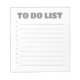 Custom notepad featuring "To do list" in heavy sans-serif typography with checklist for ten tasks, including check boxes. Includes forty tear away pages with hard cardboard backing.