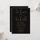 This black and gold minimalist elegant script wedding invitation can be personalised with your information in chic typography with your wedding website details and your QR code on the reverse. Designed by Thisisnotme©