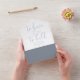 This all-in-one minimalist wedding invitation features elegant dusty blue typography. The invitation includes a perforated RSVP card with your wedding website QR code. Designed by Thisisnotme©