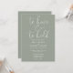 This sage green minimalist elegant script wedding invitation can be personalised with your information in chic typography with your wedding website details and your QR code on the reverse. Designed by Thisisnotme©