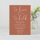 This terracotta minimalist elegant script wedding invitation can be personalised with your information in chic typography with your wedding website details and your QR code on the reverse. Designed by Thisisnotme©