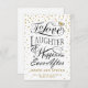 To love laughter and happiness ever after design for weddings, save the date announcements, with golden confetti, custom lettering