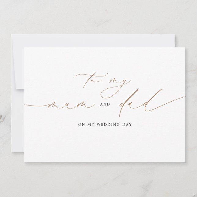 Elegant script calligraphy wedding day card - TO MY MUM AND DAD ON MY WEDDING DAY