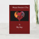 Roses in the shape of a heart in a frame with a black background. The card itself has a red background and reads Happy Valentine's Day To My Wife. The heart says it all.