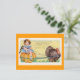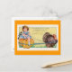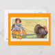 Designed by Susan Epps Oliver. Whimsical vintage Thanksgiving image of a little girl riding on a pumpkin drawn along by a turkey. The message is " Thanksgiving Greetings - To wish you a happy Day "