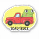 Toad Truck Funny Tow Truck Pun features a cute toad on the back of a pick up truck, getting towed. Funny Pun gift for family and friends who love tow trucks towing toads and puns.