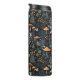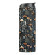 This whimsical design features terracotta toadstool mushrooms on a dark navy blue background with forest berries and fauna.
