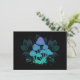 Mysterious, bioluminescent, hallucinogenic, bright toadstools with bushes of marsh plants on night, dark, glowing background. Glowing mushrooms. Goblincore, Mushroomcore,