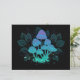Mysterious, bioluminescent, hallucinogenic, bright toadstools with bushes of marsh plants on night, dark, glowing background. Glowing mushrooms. Goblincore, Mushroomcore,