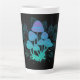 Mysterious, bioluminescent, hallucinogenic, bright toadstools with bushes of marsh plants on night, dark, glowing background. Glowing mushrooms. Goblincore, Mushroomcore,