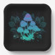 Mysterious, bioluminescent, hallucinogenic, bright toadstools with bushes of marsh plants on night, dark, glowing background. Glowing mushrooms. Goblincore, Mushroomcore,