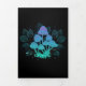 Mysterious, bioluminescent, hallucinogenic, bright toadstools with bushes of marsh plants on night, dark, glowing background. Glowing mushrooms. Goblincore, Mushroomcore,