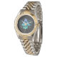 The watch is very nice, the picture is great and the watch looks like quality. The only problem I am having with it is that it is a little too large, and I also can't figure out how to open the clasp. No directions came with it. Very good. The printing is perfect and the watch keeps good time.
