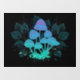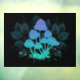 Mysterious, bioluminescent, hallucinogenic, bright toadstools with bushes of marsh plants on night, dark, glowing background. Glowing mushrooms. Goblincore, Mushroomcore,