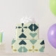 Vintage geometric pattern in shades of blue, lime green, and petrol yellow.