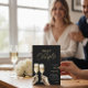 Celebrate the joyous occasion of love and commitment with this elegant engagement announcement. Featuring a sophisticated 'Toast The Couple' script in shimmering gold against a classic black background, this design evokes a sense of celebration and luxury. The watercolor illustration of champagne flutes held high adds a personal and festive touch, perfect for announcing your engagement party or reception. Let your guests know they are invited to share in your happiness with this exquisite and memorable announcement.