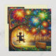 A young boy on a tree swing watches a fire works' display and celebrates Toby's birthday. The greetings on the card are "Happy Birthday Toby". On the back of the card is a small version of the front picture, and plenty of room to write a message. Made with the assistance of AI Bing.