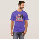 I give wanted to give this a 4 instead of a 5 because these Basic DARK T0shirts run unexpectedly SLIM or Narrow. Which is great if you do not have a potbelly, but I have a paunch. It isn't the shirt's fault that I've got a beer belly. The design and shirt itself is a quality cotton shirt. The color is more of a deep purple, but still a very pretty color. The Basic DARK T-shirts run a bit SLIMMER than the Basic Ts. The neck is a fraction narrower (or seems to be narrower) also. I'm a paunchy middle-aged woman and my neck is 12 inches (31cm) thick and the neckline fell about the same as in the photo of the man, and I had the desire to tug it a bit. So if you're a thick necked man or like loose shirts, be aware these are slimmer shirts. Once I get rid of my lockdown paunch it'll look great. The shirt washed well in cold water with no apparent bleeding. We don't have a dryer, so it hung dry. Did not shrink. Love the colors and the design. The design looks smaller on my shirt than it does on the model on-line. But still, it looks good on the shirt. The printing looks as it does on the model, just the size seems fractionally smaller. Washed garment in cold water, hung dry and design appeared unaffected.