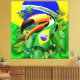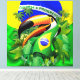 Brazilian Toco Toucan on Tropical Jungle, wearing a Scarf with Brazil Flag Colours. For Brazil Lovers and for Brazil 2014 Football worldcup Supporters! Original Vector Art Copyright BluedarkArt TheChameleonArt