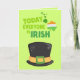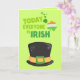 A lovely St. Patrick's Day card, this item features a lime green background with "Today Everyone is Irish" fun card. It features clovers, one bearing the colours of the Irish flag with a themed hat at the bottom. The inside features warm Irish blessings. Even add your own photos, artwork, etc. to the design. Personalise yours today!